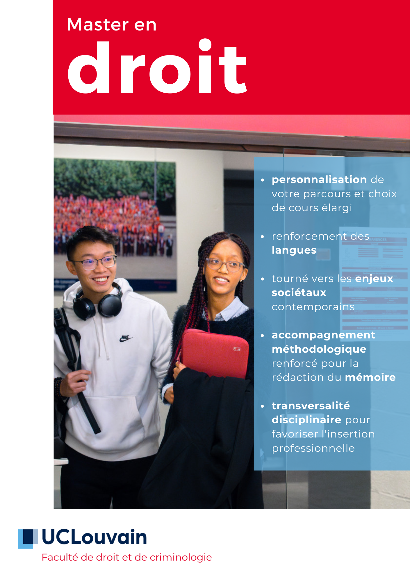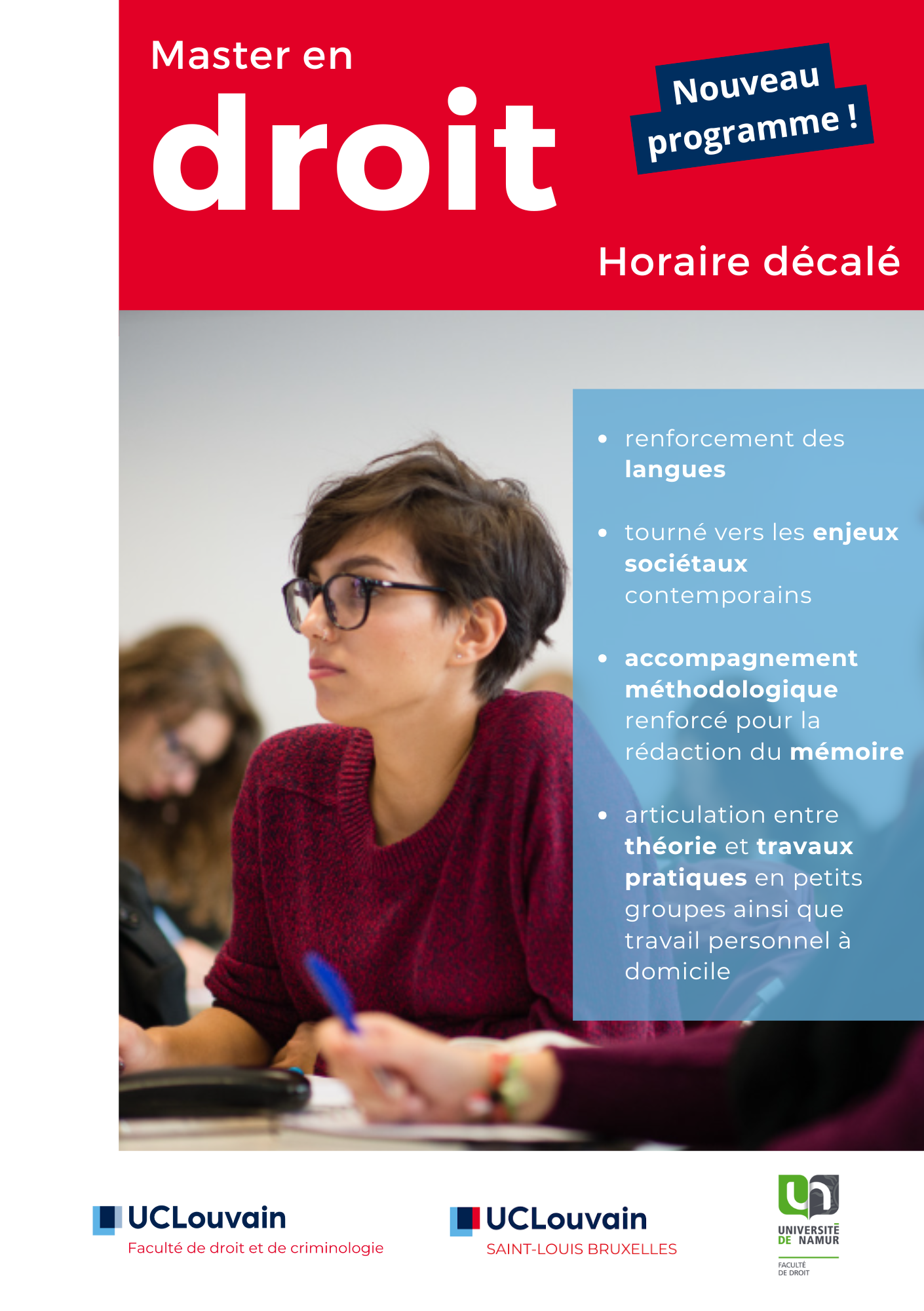 - 1er ou 2ème cycle universitaire en droit d'une université étrangère et pour lesquels le jury d'admission a considéré qu'ils doivent ajouter un module complémentaire spécifique à leur programme (cfr. la procédure d'admission).