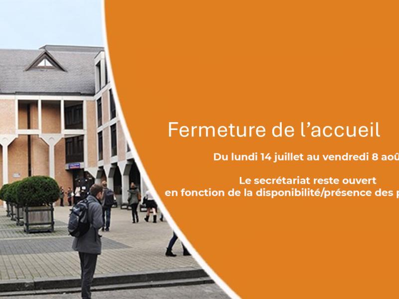 L'accueil sera fermé du lundi 14 juillet au vendredi 8 août inclus.Le secrétariat reste ouvert en fonction de la disponibilité/présence des personnes.