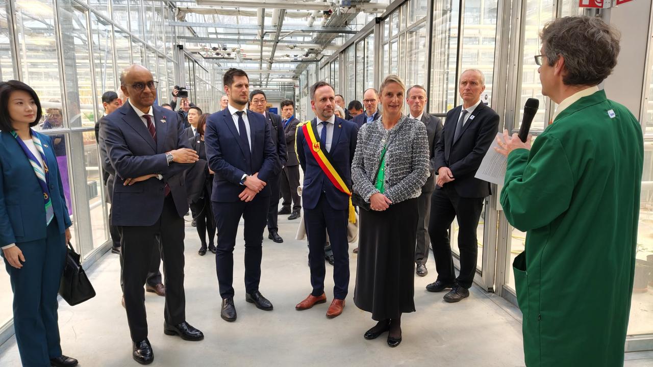 Also present during the visit were the Minister-President of the Walloon Government Adrien Dolimont, the Governor of the Province of Walloon Brabant Gilles Mahieu, the Mayor of the City of Ottignies-Louvain-la-Neuve Nicolas Van der Maren, and the Rector of UCLouvain Françoise Smets.