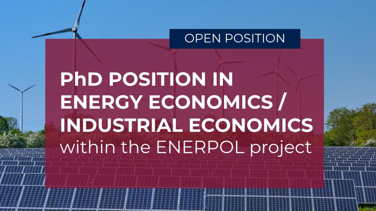 PhD position in Energy Economics - Industrial Economics within the ENERPOL project