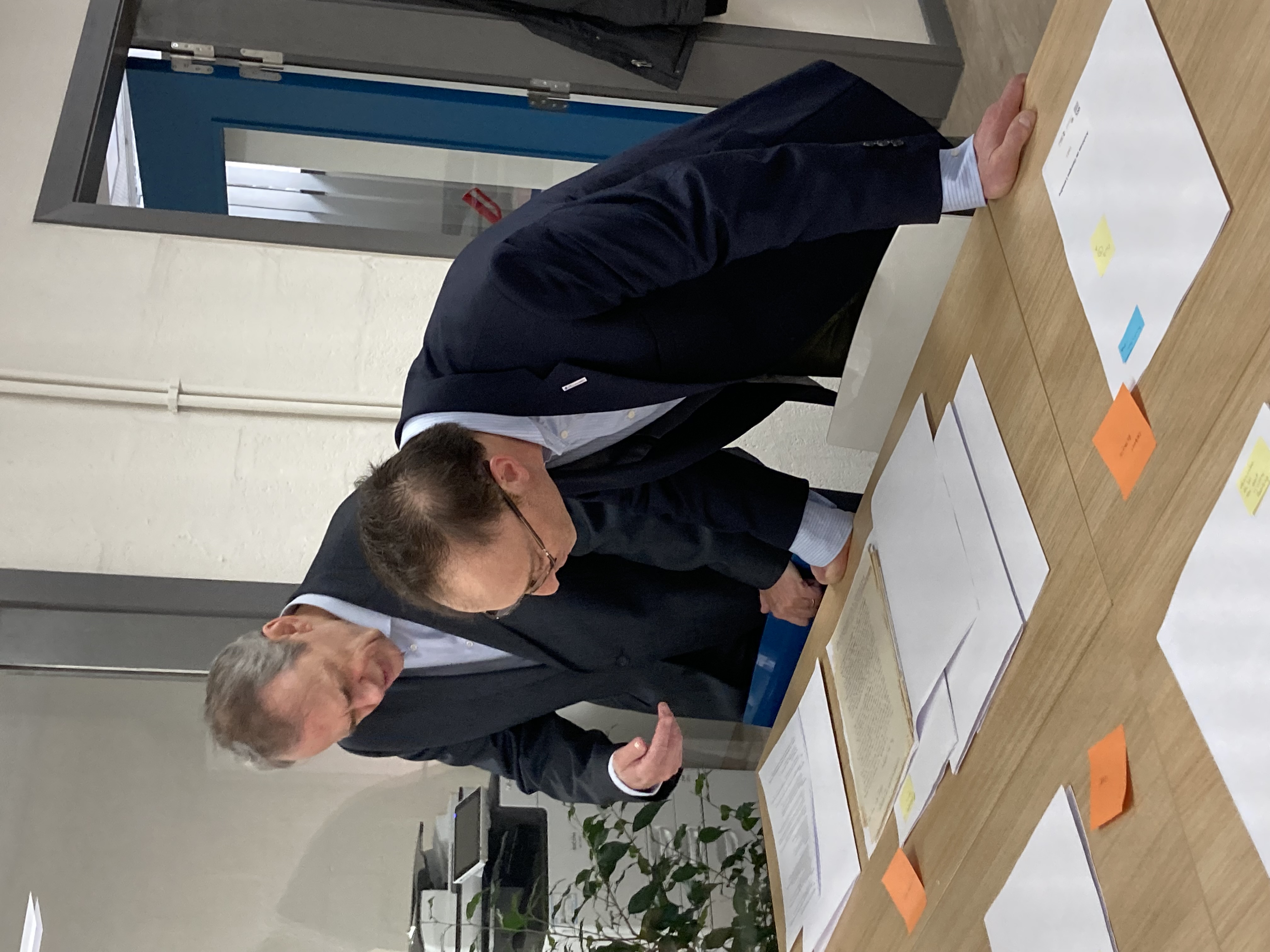 Ce 28 mars 2023, le 16e lauréat du prix Georges Lemaître, Sheperd S. Doeleman, astrophysicien américain, est venu à la rencontre de son illustre prédécesseur. C’est ainsi que l’équipe des Archives de l’Université et le professeur Jan Govaerts ont eu le privilège de lui présenter, en quelques étapes, les parcours de Georges Lemaître à partir de ses archives. L’homme de sciences et l’homme de foi ont retenu l’attention de celui qui aujourd’hui approfondit les intuitions du scientifique belge. Sheperd S. Doeleman, qui utilise les dernières avancées techniques pour capturer l’image du non visible, le trou noir, s’est ainsi retrouvé face aux premiers graphes tracés à la main sur base de données partielles et surtout à partir de la capacité d’analyse et de compréhension d’un Georges Lemaître convaincu de sa lecture. Leurs challenges se télescopent : comment montrer ce qui ne peut être vu ?