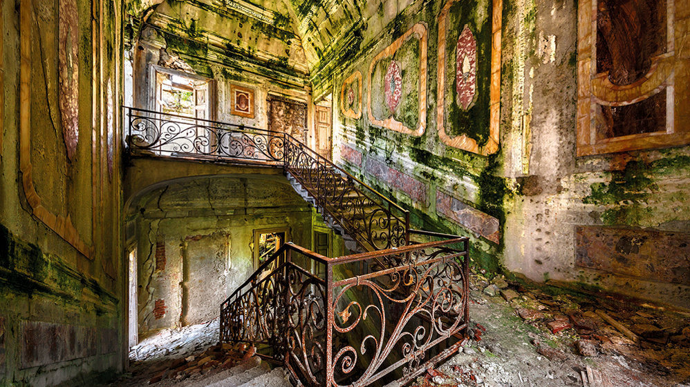 Les vestiges photographiques de mondes disparus Découvrez l'ancien pavillon de chasse de la duchesse de Parme, un spectaculaire château mauresque laissé à l'abandon, les vestiges d'un studio de cinéma avec les décors du film Pinocchio, un asile psychiatrique désaffecté, une discothèque tombée dans l'oubli dans un faux château médiéval, les ruines d'un hôtel spa renommé qui fut ravagé par un incen