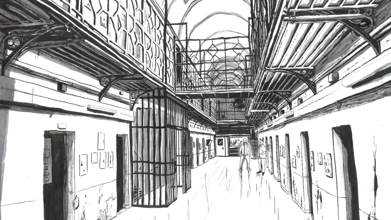 Pour nous immerger dans le quotidien de la vie pénitentiaire, l’expo croise les dessins originaux de l’artiste Manu Scordia et des extraits de récits de vie du personnel et de détenu·es, recueillis par Pascale Jamoulle et ses étudiant·es de l’UCLouvain, en collaboration avec les délégués de Picardie Laïque pour l’assistance morale.