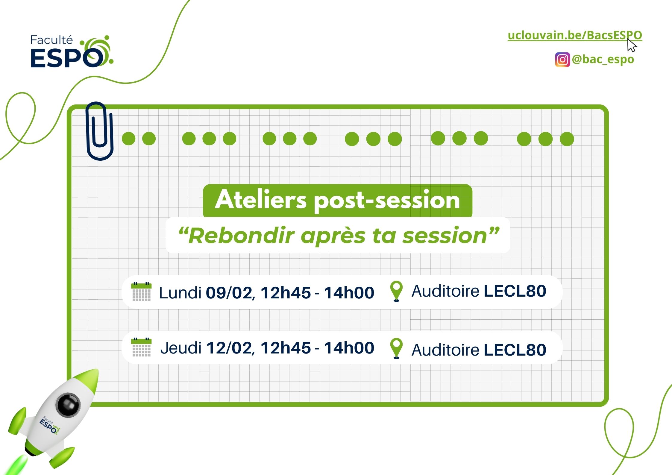 Deux dates possibles : Le lundi 09 février 2026 ou le jeudi 12 février 2026, de 12h45 à 14h00, au LECL 80 !