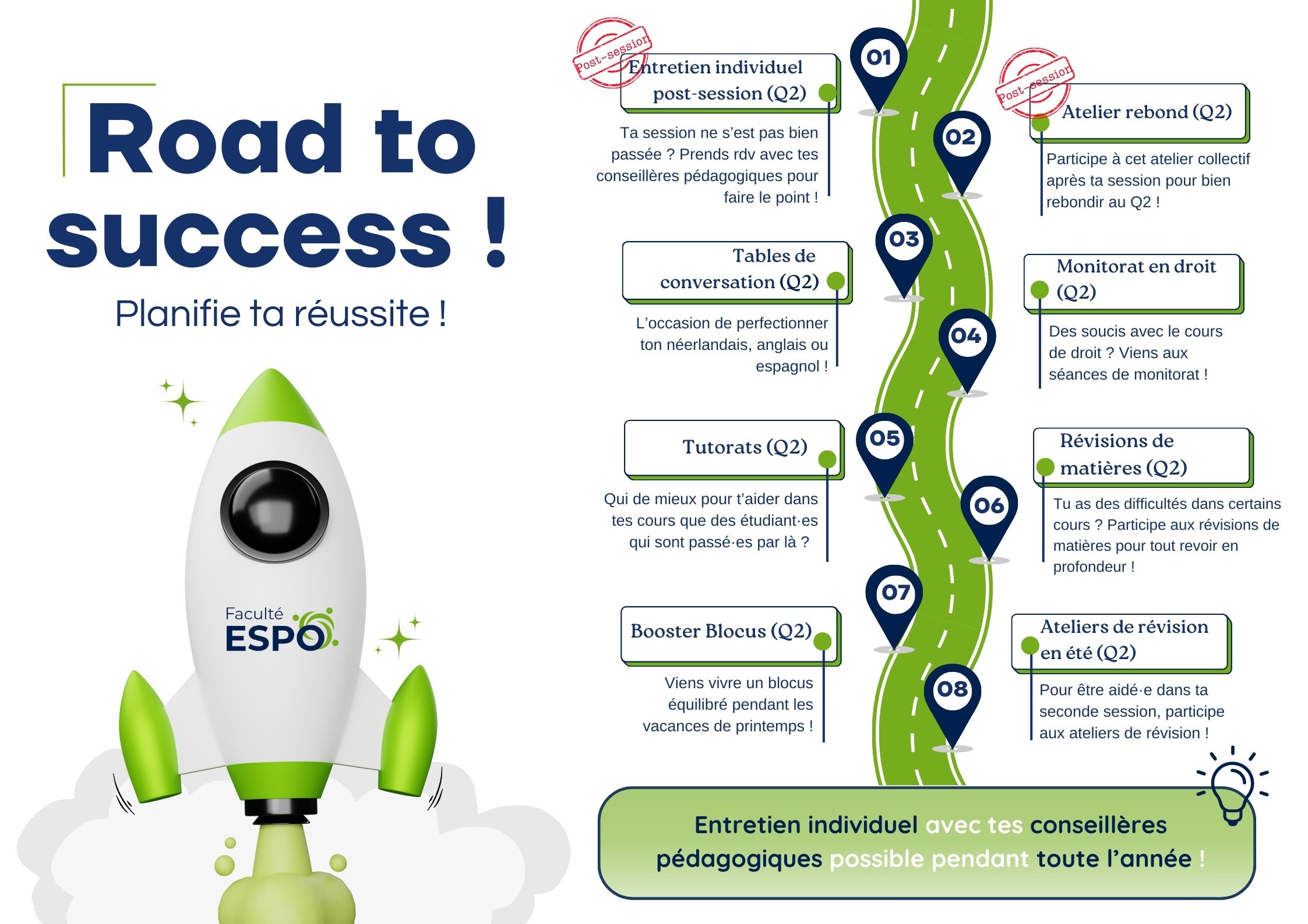 En faculté ESPO, notre objectif, c’est ta réussite ! Et pour y arriver, on t’accompagne pendant tout ton parcours avec le dispositif de « soutien à la réussite en ESPO » !