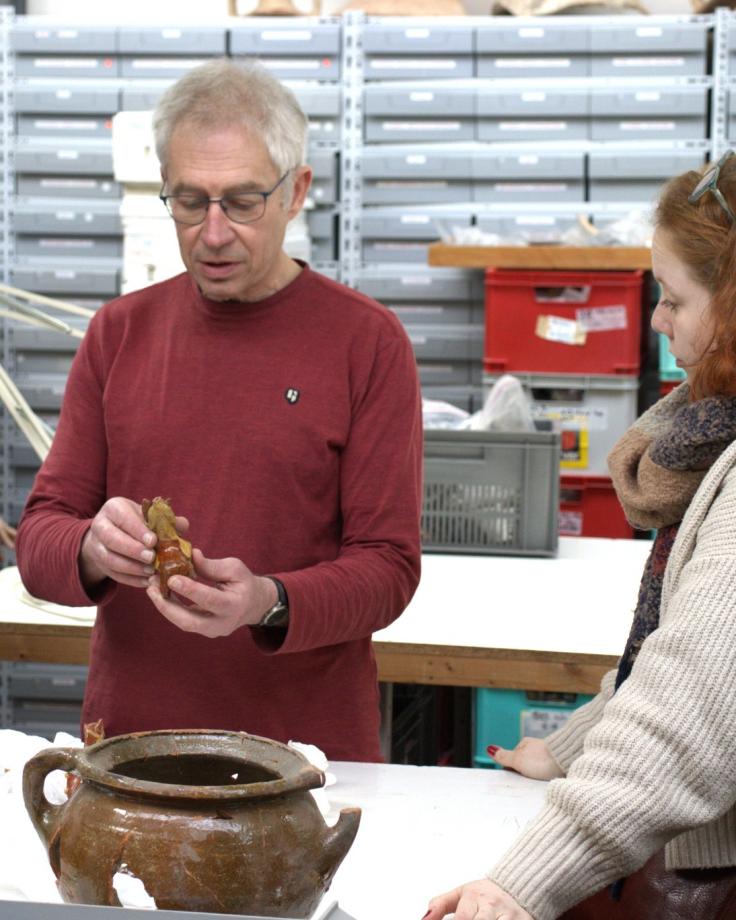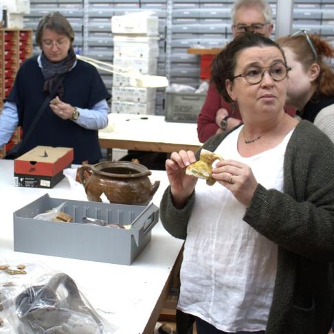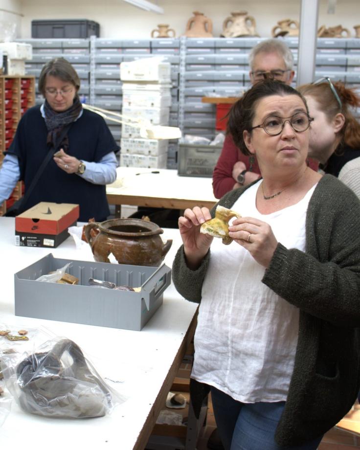 De l’argile au pot, les techniques de production, l'organisation des ateliers, la diffusion et la commercialisation, les fonctions et usages avec toutes les implications économiques, sociales et culturelles ont été passés au crible y compris les méthodes d’analyse quantitative et qualitative. Trois de nos anciennes mémorantes aujourd’hui expertes céramologues de l’Agence wallonne du Patrimoine (S. Challe, S. de Longueville, M. Pirson) ont été rejointes par Maxime Poulain (Universität Tübingen) qui ont également animé des manipulations et exercices de reconnaissance au laboratoire du CRAN. Les connaissances fraîchement acquises ont ensuite été mobilisées et contextualisées en visitant l’exposition consacrée au site exceptionnel d’Huppaye (Ramillies), avec V. Danese et L. Delehouzée de l’AWaP.