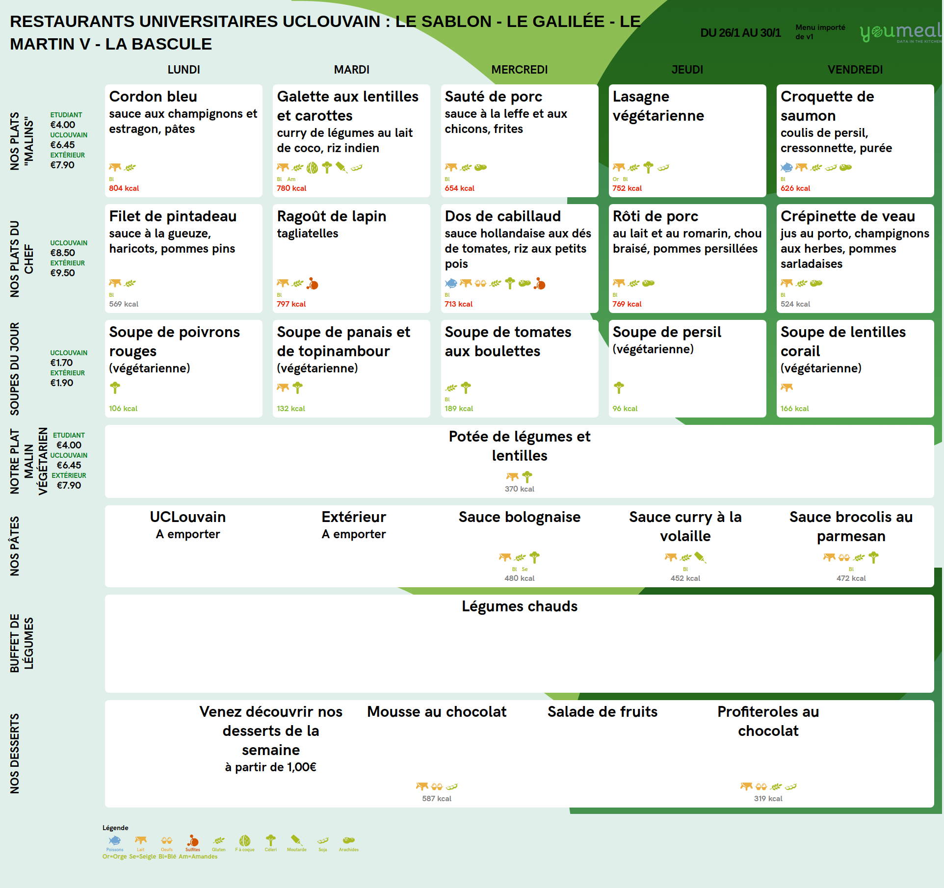 Poisson pané (Cabillaud pané, salade, tomates, sauce au choix, féculent au choix) | 7,25€ | 8,30€ |